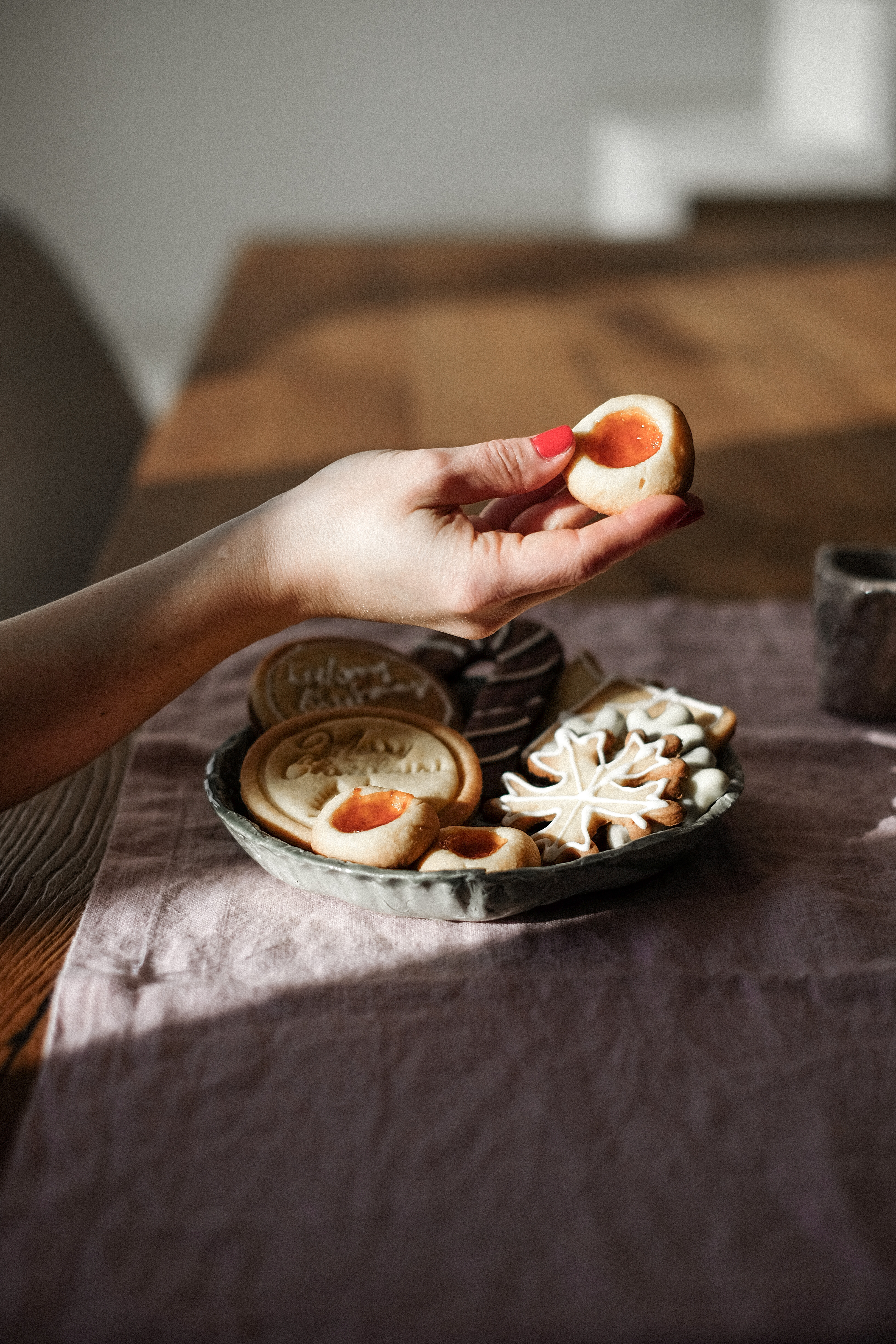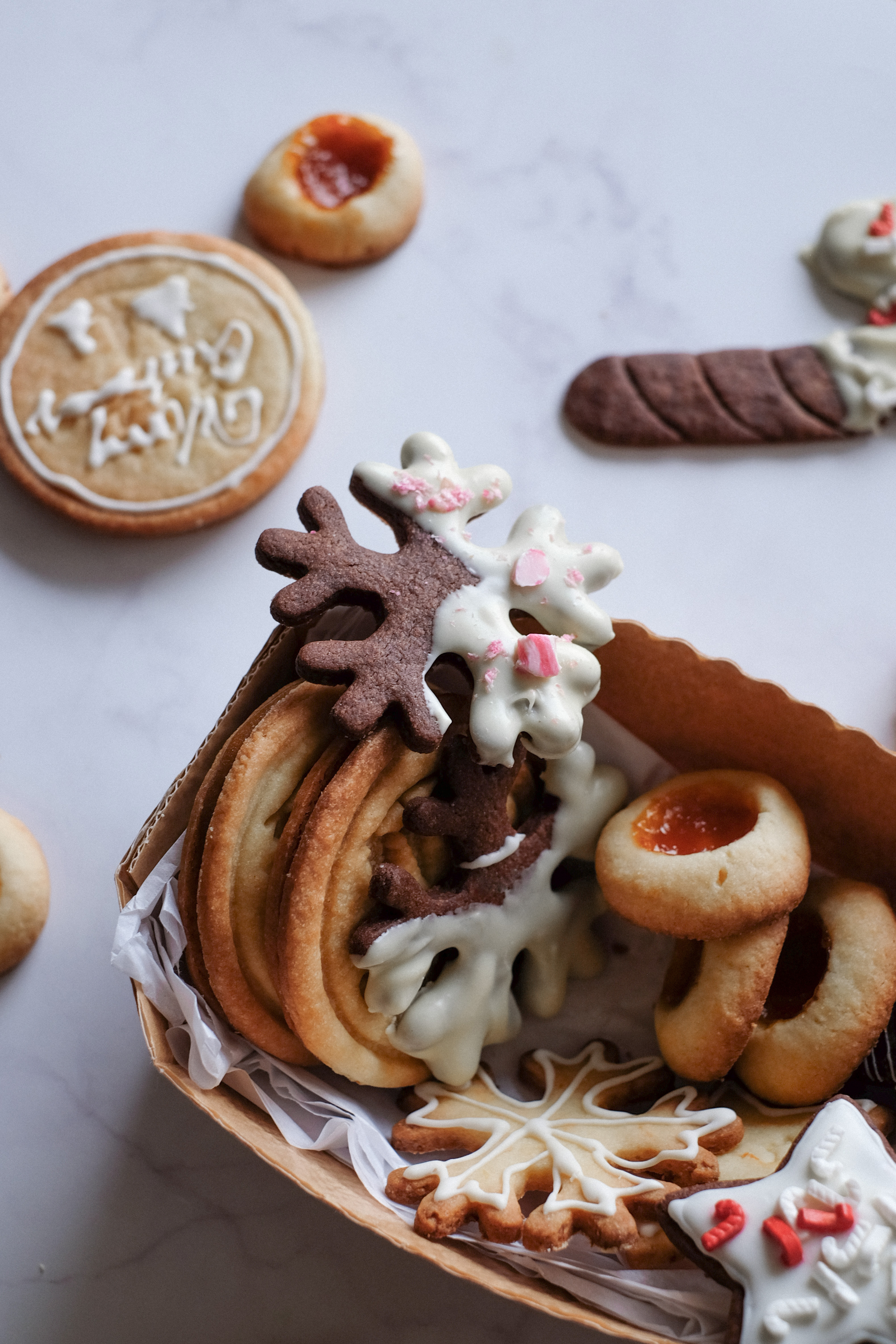 Per i biscotti ripieni di Orange Curd ho creato due dischi uguali, tondi e quadrati su uno dei dischi ho usato uno stampino apposito con scritto “Merry Christmas” che ho acquistato sempre da Collini. Mentre quelli quadrati li ho decorati con la ghiaccia creando delle finestre e dei pacchi regali. Una volta cotti ho aggiunto un cucchiaino di crema su un disco e chiuso “a panino” con il secondo disco uguale.