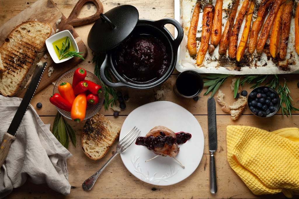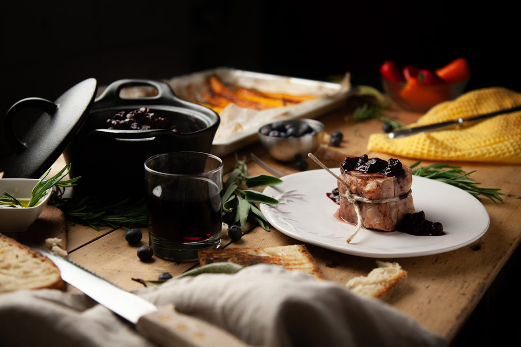 Quando la carne sarà pronta rimuovi il sacchetto del sottovuoto e crea i medaglioni di filetto di uno spessore di almeno 2 cm. (il colore all’interno del filetto dovrà essere rosa). Mettililo “in forma” aiutandoti con uno spago da cucina, per evitare che perda la sua circolarità, quindi rosola sulla piastra bollente le estremità. Impiatta e decora con la salsa ai mirtilli.